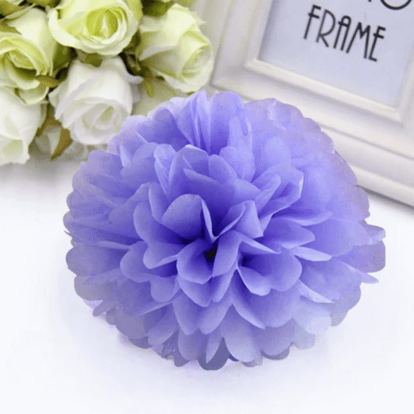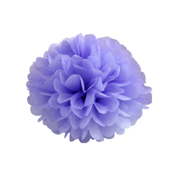 Bola flor decorativa de papel en color lila,  ideal para dar un toque alegre y llamativo a cualquier celebración. Su diseño esponjoso y voluminoso lo convierte en el complemento perfecto para decorar techos, mesas o fondos de eventos como cumpleaños, baby showers, bodas y fiestas temáticas.