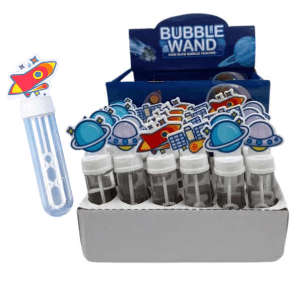 ¡Prepárate para aventuras increíbles con nuestras varitas de burbujas con temática espacial! Cada varita incluye un cohete genial, un misterioso OVNI o un planeta lejano, inspirando infinitas horas de juego con burbujas. Perfectas para fiestas, regalos o simplemente para un día de diversión al aire libre. ¡Deja volar las burbujas y la imaginación! ( El envió se realiza en colores surtidos según disponibilidad del producto)