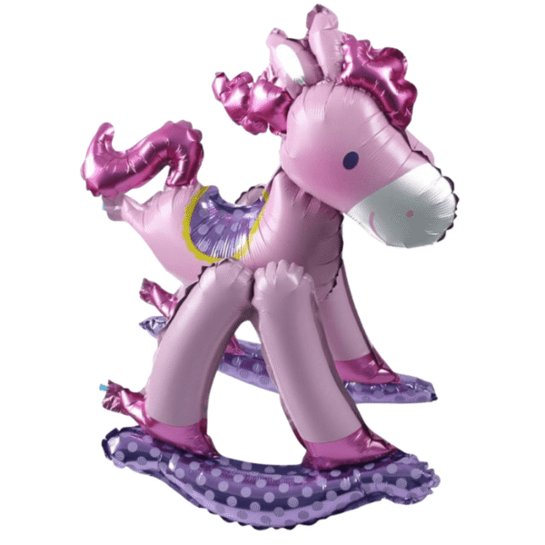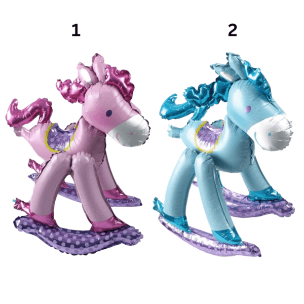 Añade un toque de encanto clásico y diversión a cualquier celebración infantil con nuestros adorables globos metalizados de caballito balancín. Perfectos para Baby Showers, cumpleaños o para decorar la habitación del bebé.Disponibles en dos encantadores colores:Rosa Dulce: Con detalles de crin y mecedora en morado brillante y lunares, ideal para princesas. Azul Cielo: Con crin y mecedora en azul metálico y lunares, perfecto para pequeños aventureros.Estos globos son el complemento ideal para crear un ambiente tierno y mágico. ¡Un recuerdo que elevará la alegría de tu evento!