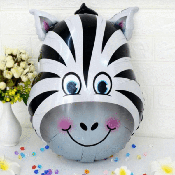 Globo figura de carita de zebra su diseño tierno y encantador encantará a niños y adultos por igual, siendo ideal para decorar cumpleaños, baby showers o cualquier celebración temática tanto en interiores como al aire libre, Photobooths o fondos decorativos ¡Perfecto para una decoración dulce y encantadora!