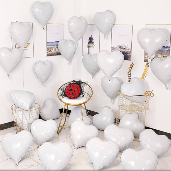 Globo metalizado en forma de corazón color blanco, perfecto para decorar celebraciones románticas, bodas, aniversarios, cumpleaños o eventos especiales. Su diseño clásico y elegante permite combinarlo fácilmente con diferentes estilos de decoración. Ideal para arreglos con globos, ramos decorativos o como detalle principal en la ambientación.